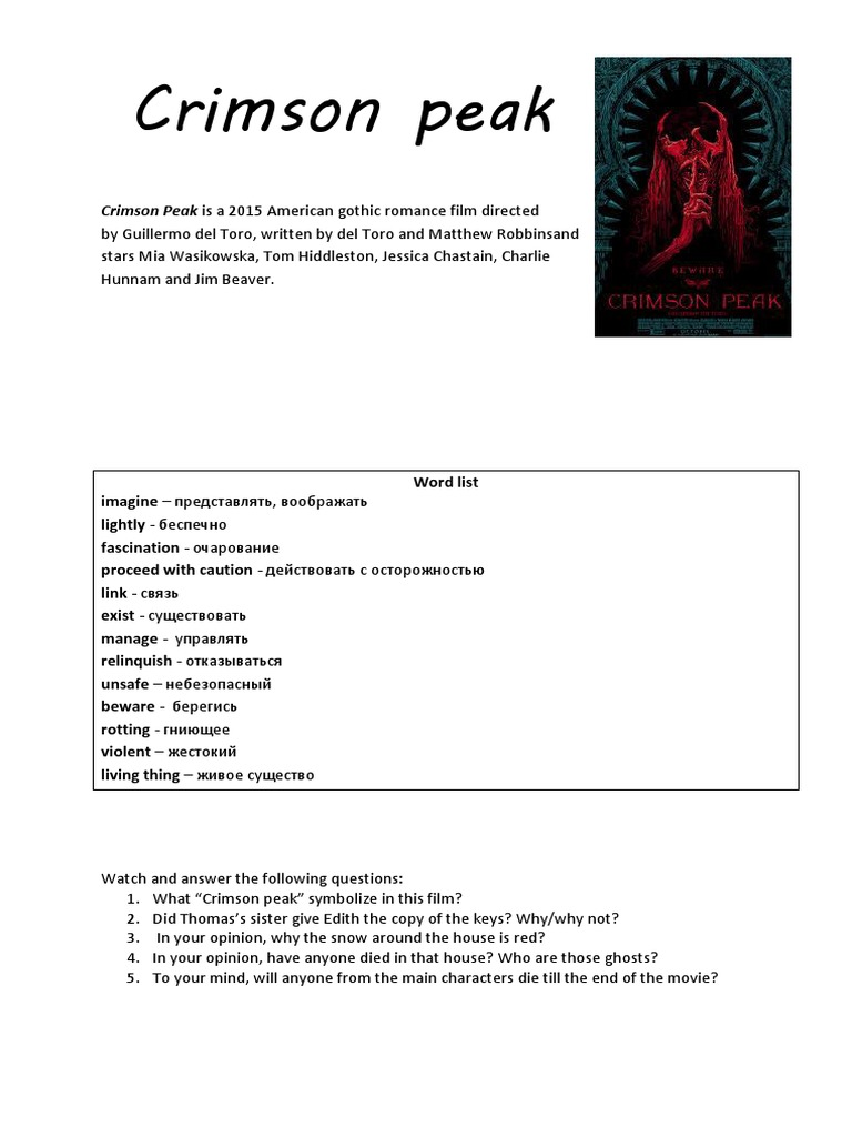 Crimson Peak Ausführliche Filmbeschreibung PDF englisch Crimson Peak Offizielle Seite zum Film. The Book 053. The last time RPGs hit a peak of popularity the gay taboo on TV had not yet been broken and the idea of a major character involved in a relationship with an.